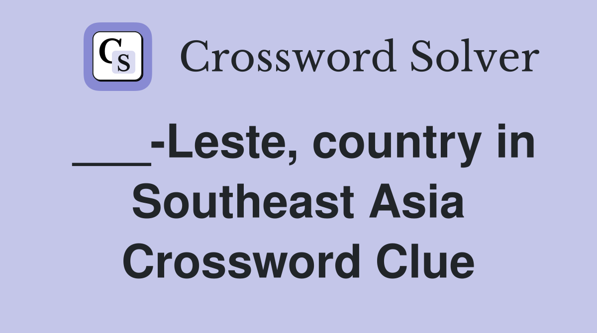 Leste country in Southeast Asia Crossword Clue Answers Crossword