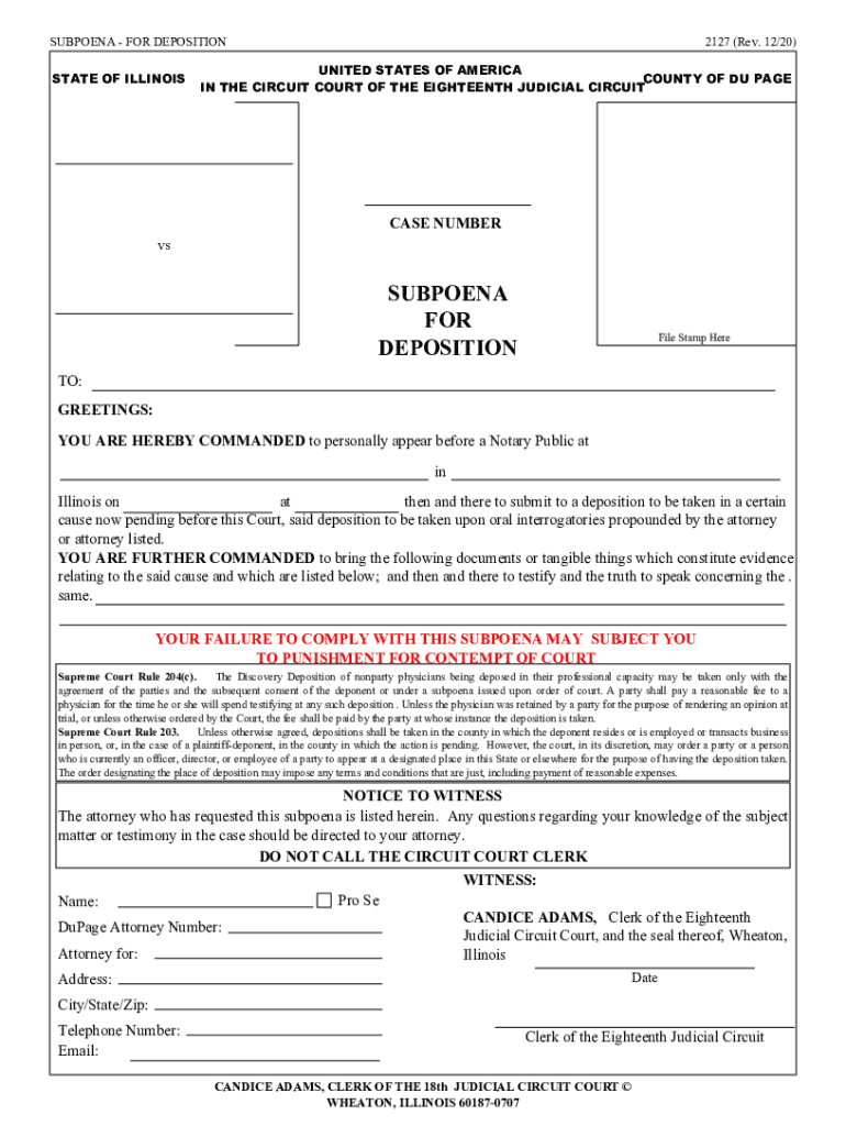 Fillable Online Forms Subpoena LaSalle County Circuit Clerk Fax