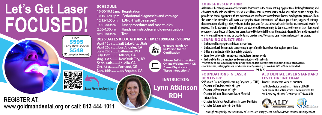 2025 LASER CERTIFICATION COURSE FOR THE DENTAL HYGIENIST GOLDMAN