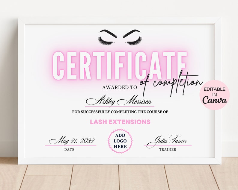 Lash Certificate of Completion Template Editable Makeup Etsy