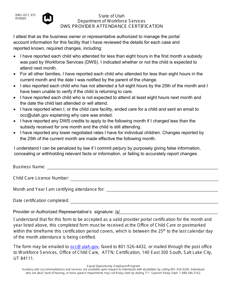 Form DWS OCC675 Download Fillable PDF or Fill Online Dws Provider