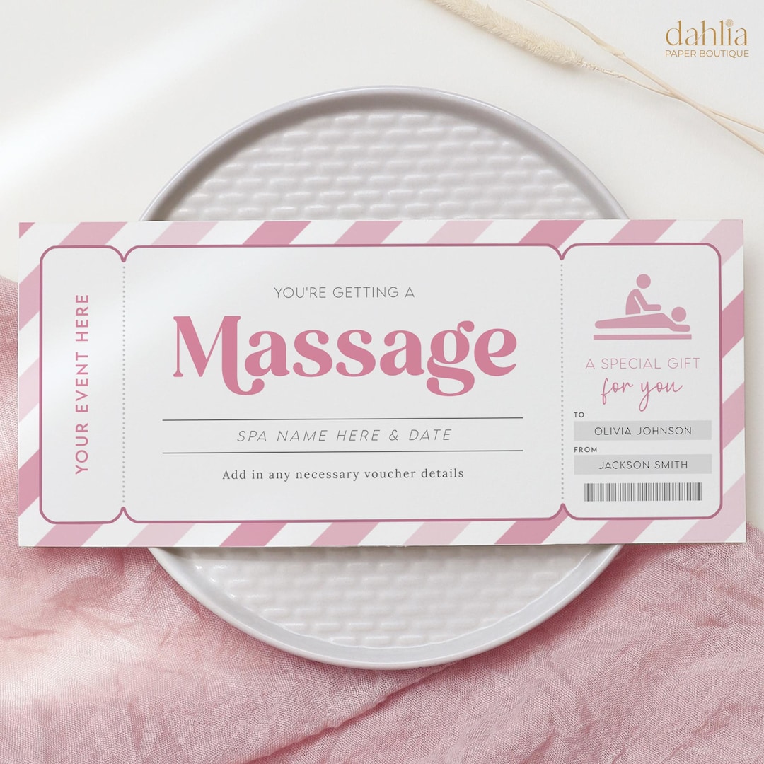 Massage Gift Voucher Editable Weekend Away Coupon Ticket Pink Couples