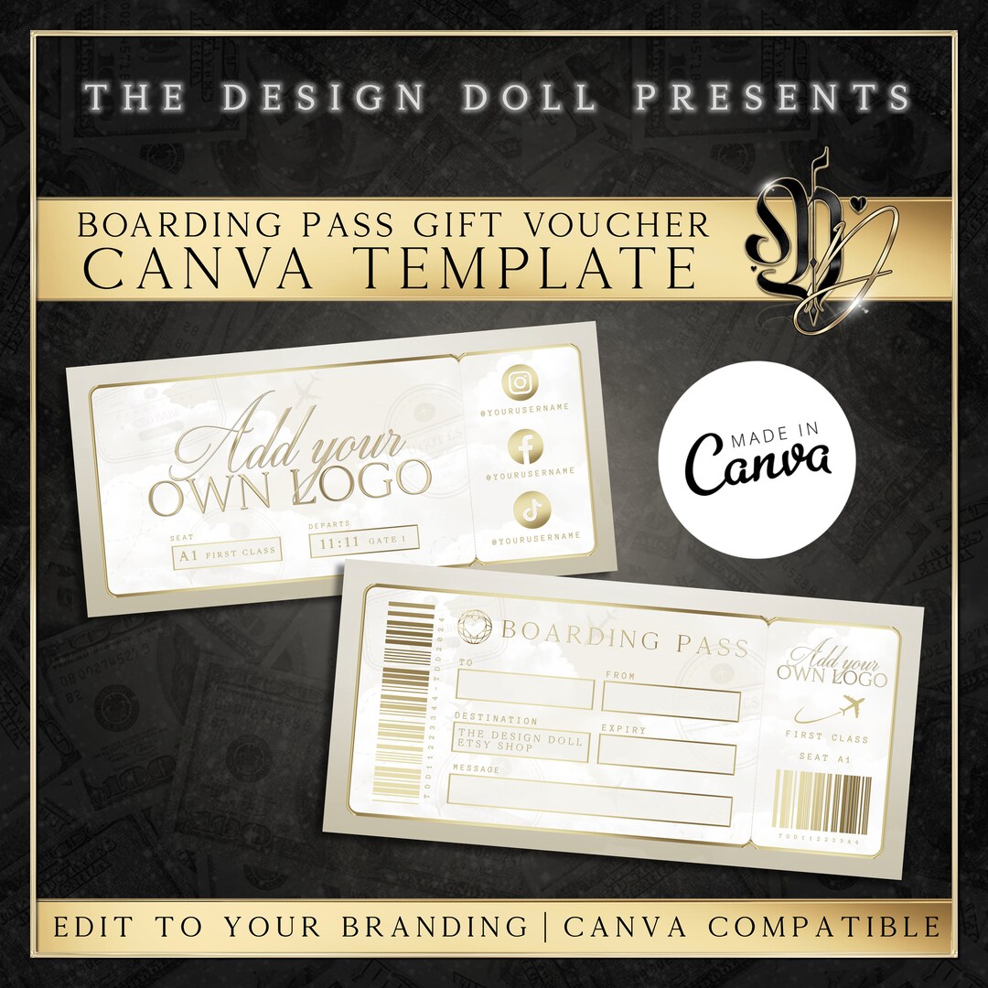 Boarding Card Gift Voucher Boarding Pass Canva Gift Card Lash Gift
