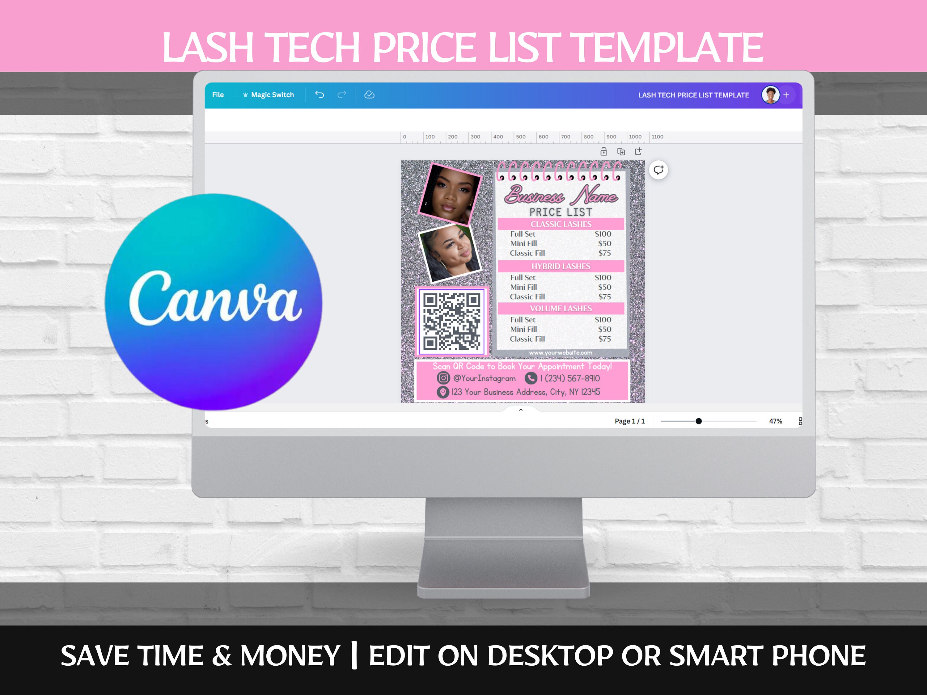 Canva template Brow/Beauty/Lash Price List Template Makeup Price List