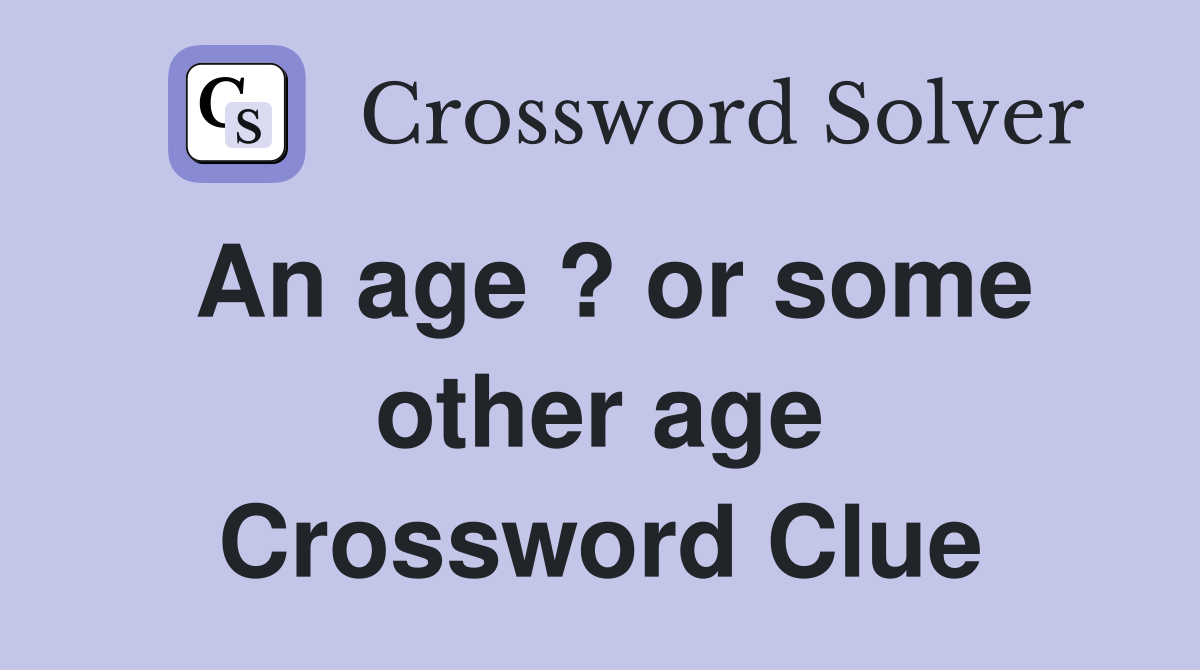 An age ? or some other age Crossword Clue Answers Crossword Solver