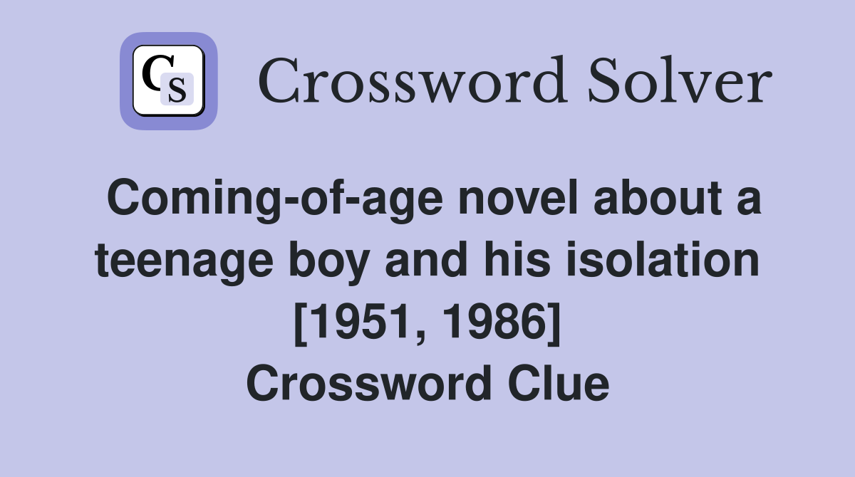 Coming of age novel about a teenage boy and his isolation 1951 1986