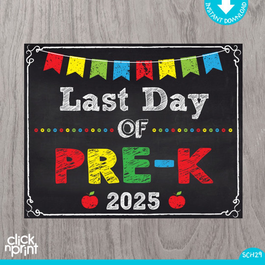 Last Day of PRE K Sign Instant Download Print Yourself Last Day of Pre