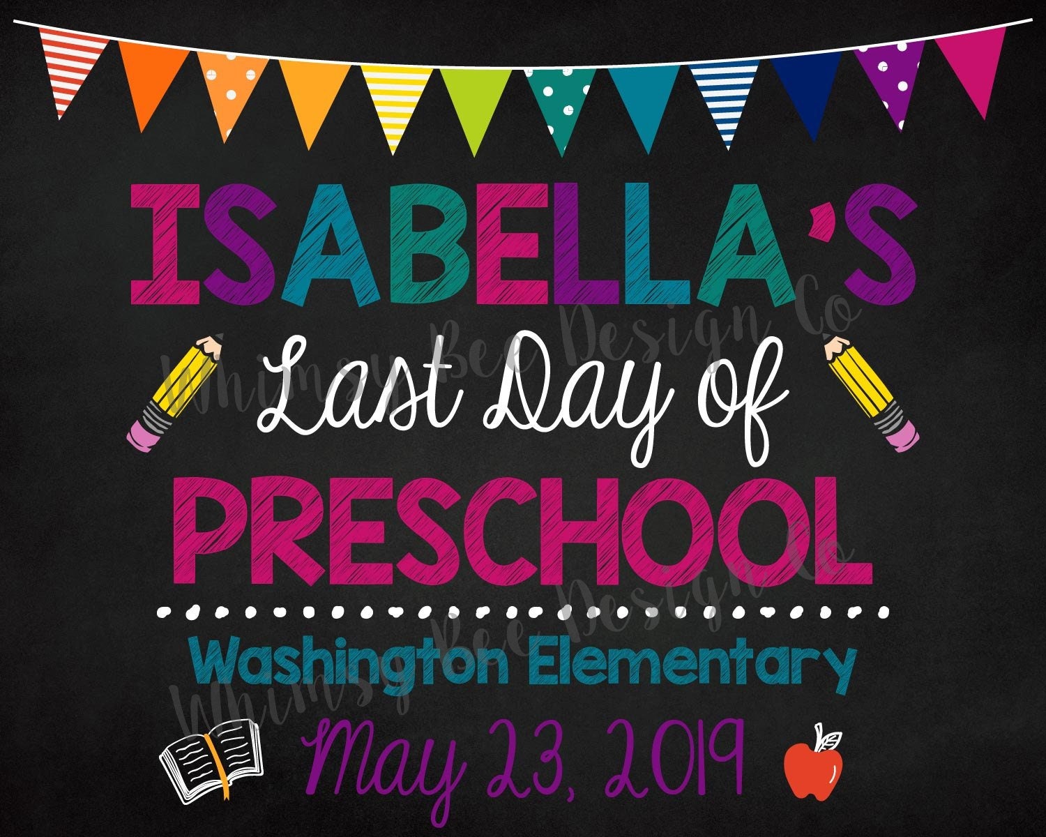Items similar to LAST DAY of Preschool Printable Chalkboard 8x10