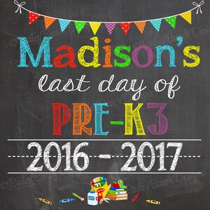Last Day of PRE K3 Sign Last Day of School Sign Chalkboard Etsy