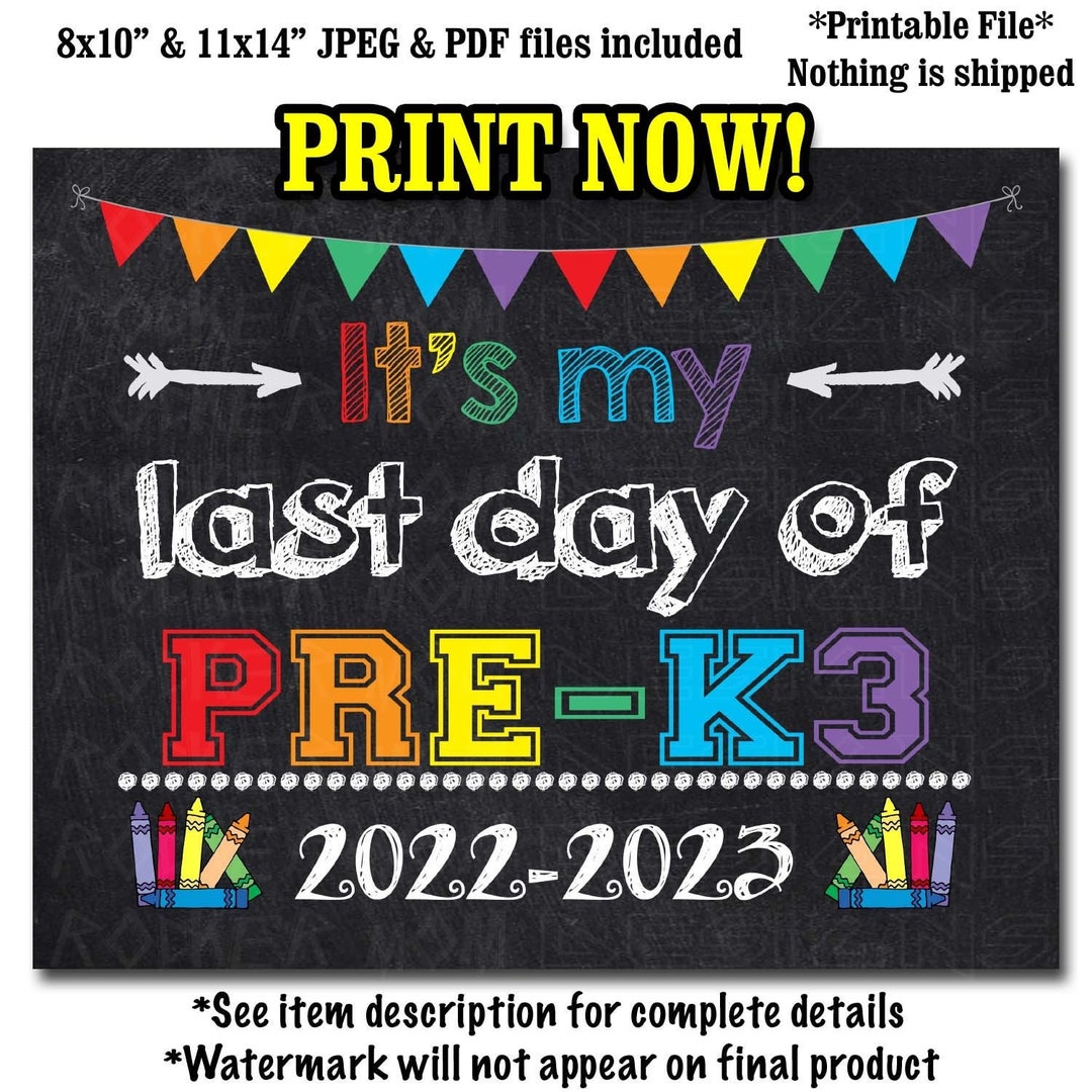 Last Day of School for Pre K Chalkboard PRINTABLE Sign Pre K Etsy
