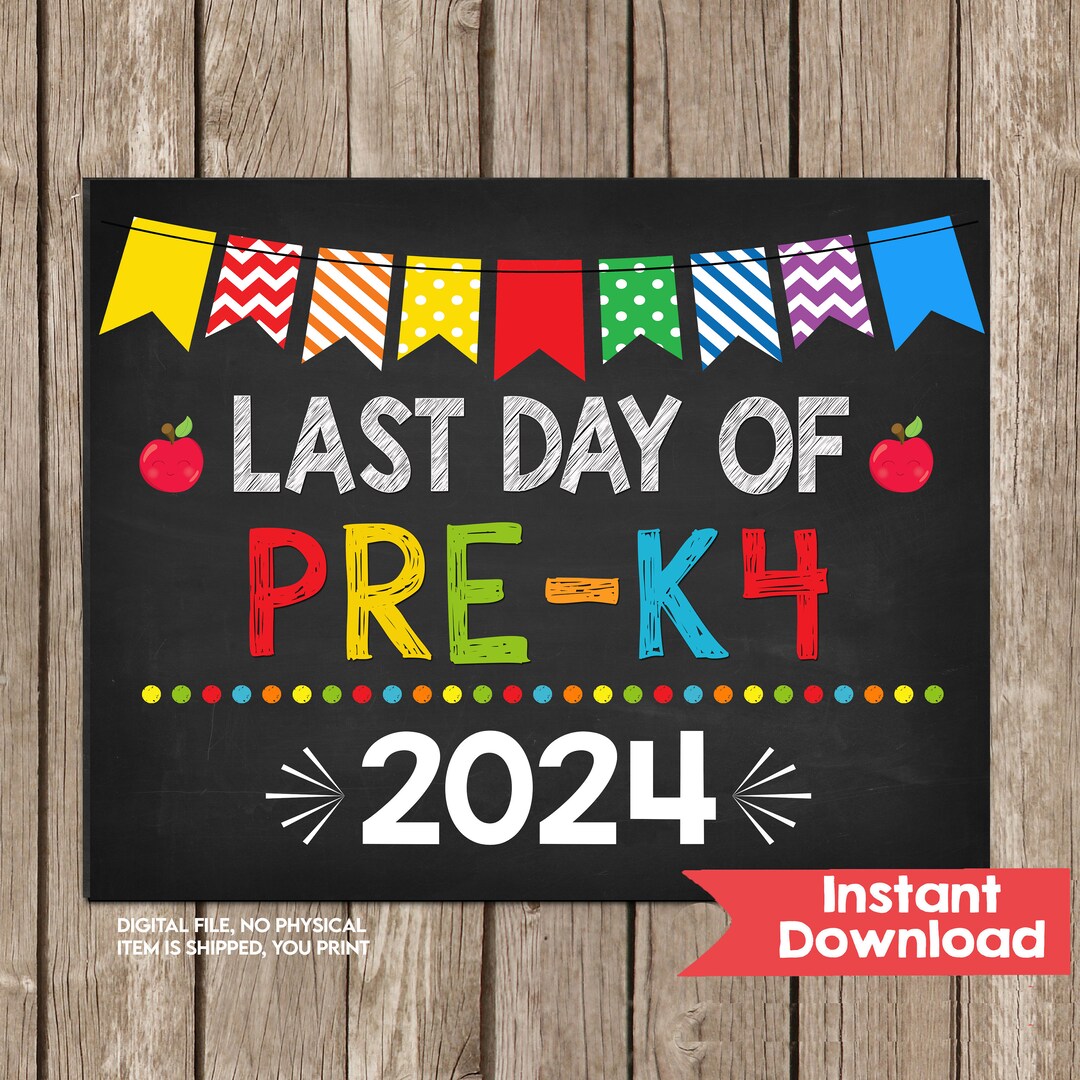 Last Day of PRE K4 Sign INSTANT DOWNLOAD Last Day of School Sign