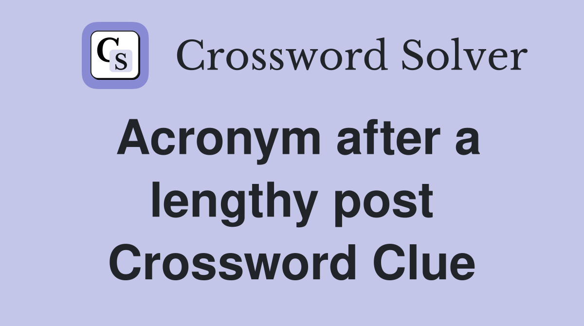 Acronym after a lengthy post Crossword Clue Answers Crossword Solver