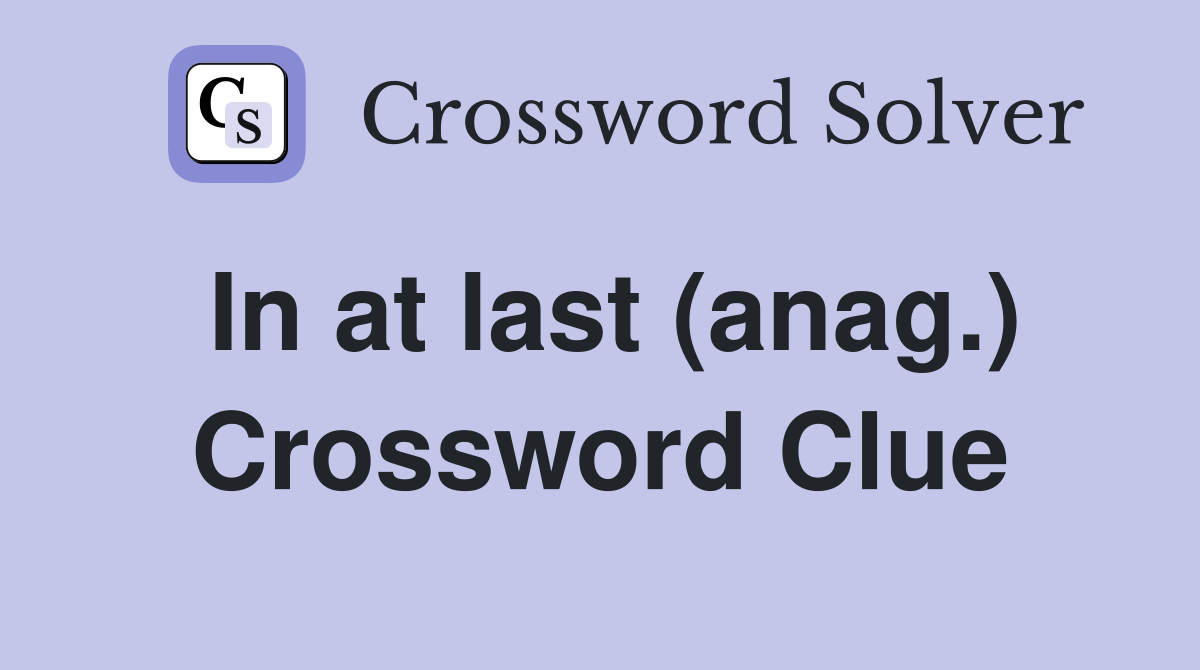 In at last (anag ) Crossword Clue Answers Crossword Solver
