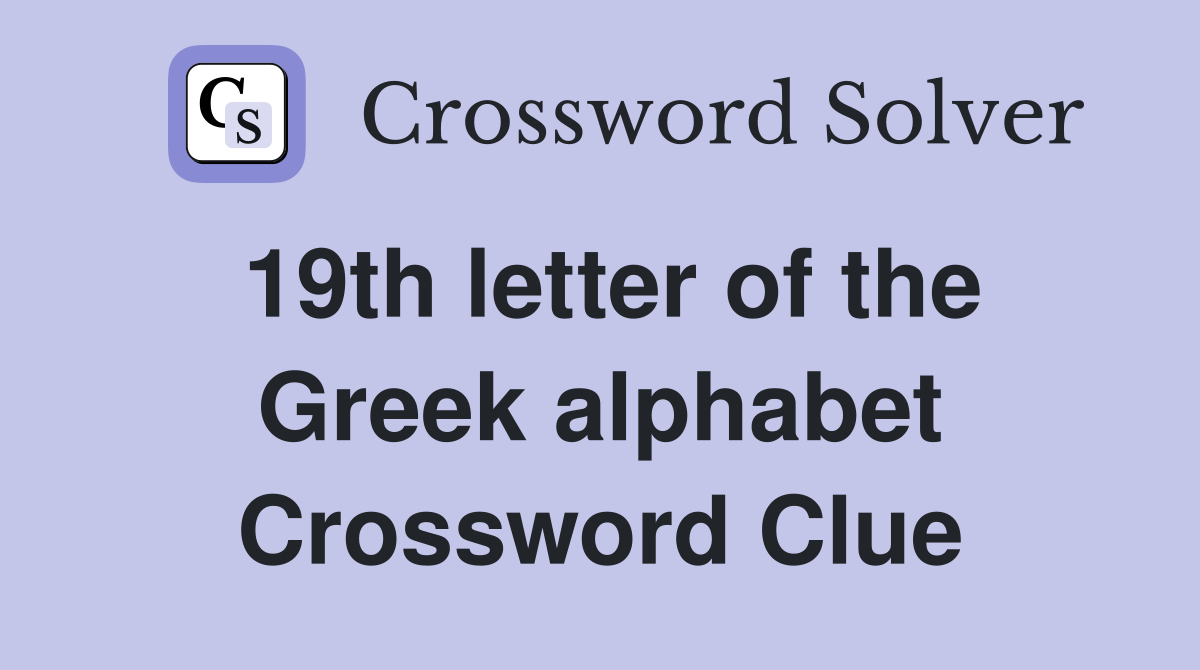 19th letter in the Greek alphabet Crossword Clue Answers Crossword