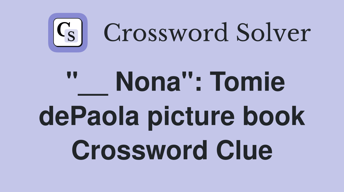 Nona quot : Tomie dePaola picture book Crossword Clue Answers Crossword