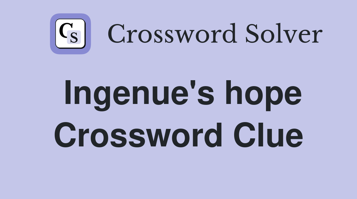 Ingenue #39 s hope Crossword Clue Answers Crossword Solver