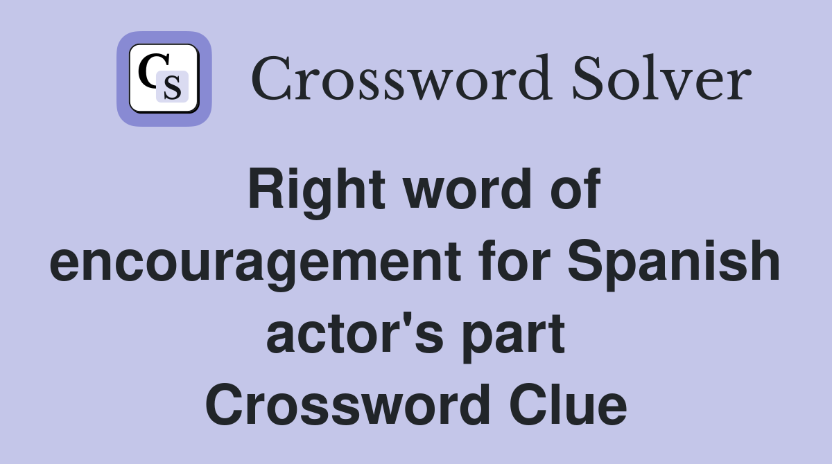 Right word of encouragement for Spanish actor #39 s part Crossword Clue