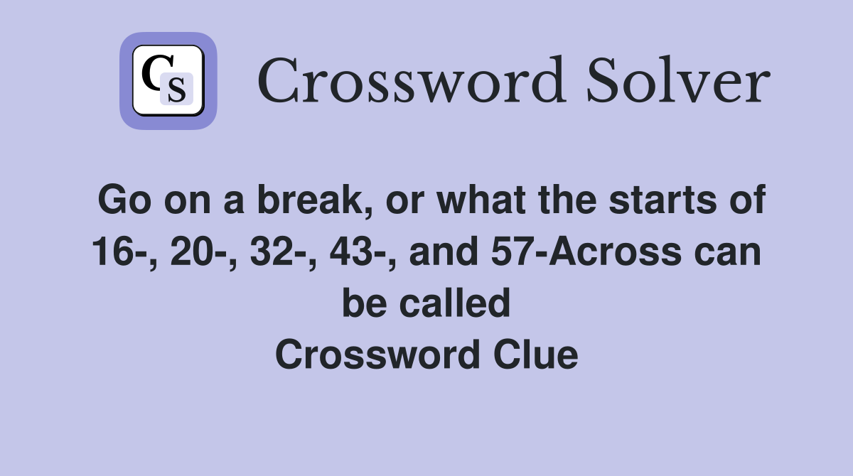 Go on a break or what the starts of 16 20 32 43 and 57 Across