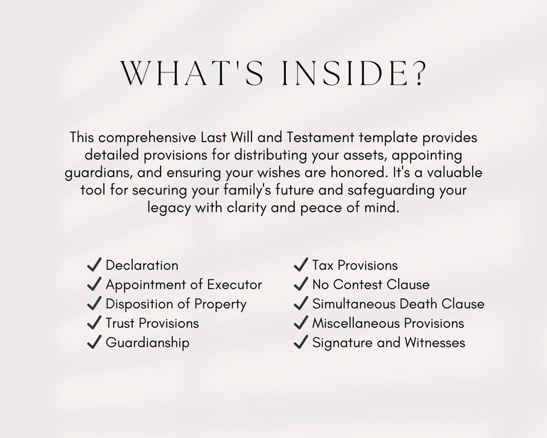 Last Will and Testament Template DIY Last Will Template Customizable
