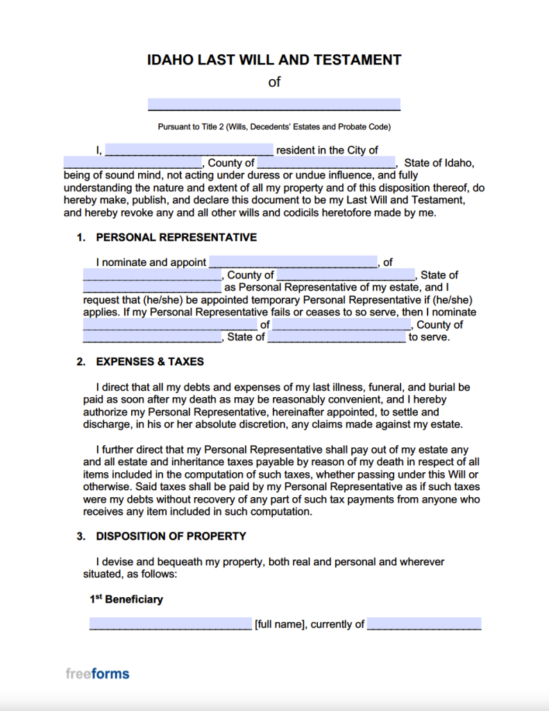 Free Idaho Last Will and Testament Template PDF Word eForms