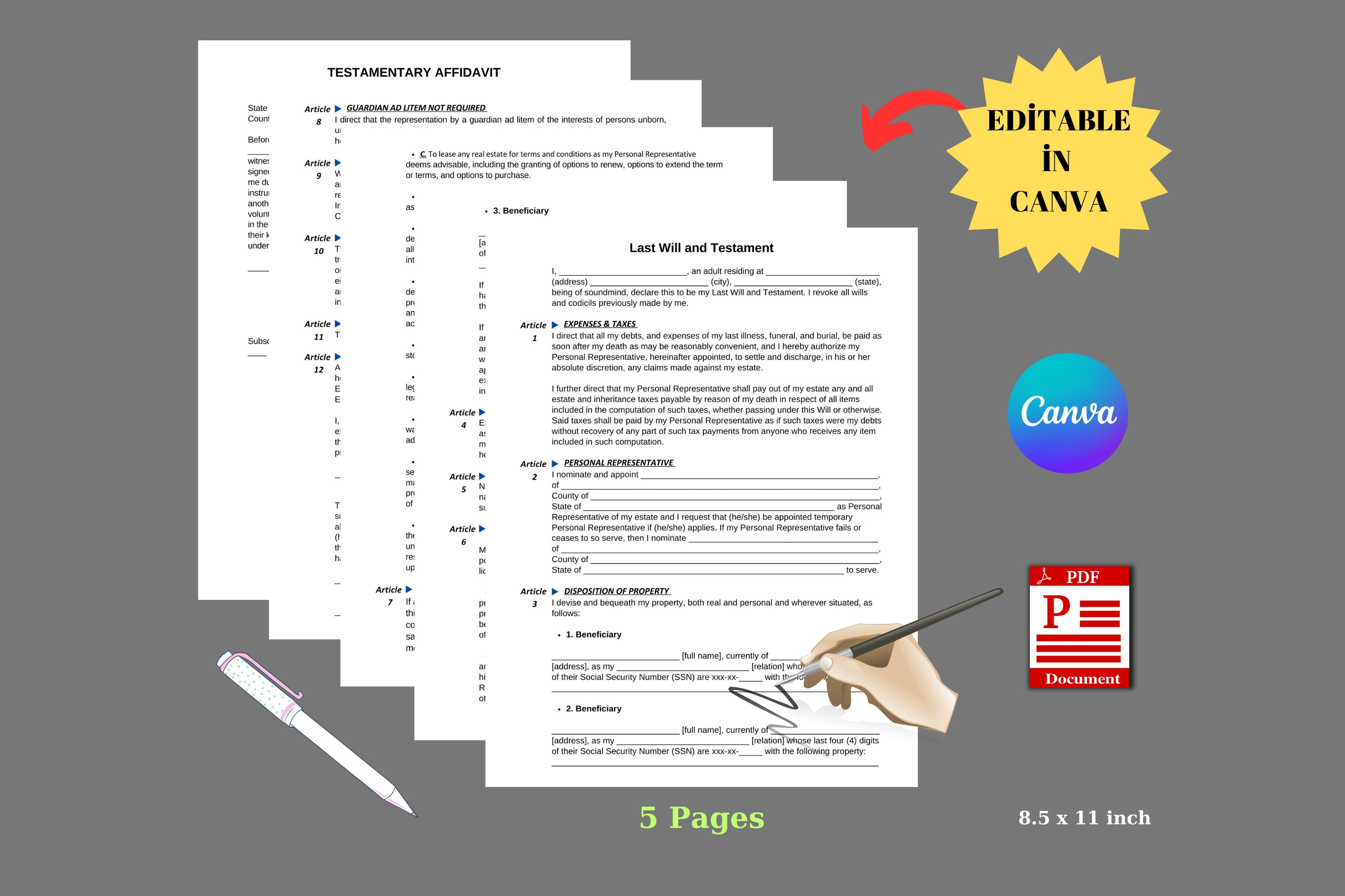 Last Will and Testament Template Editable in Canva Last Will Etsy