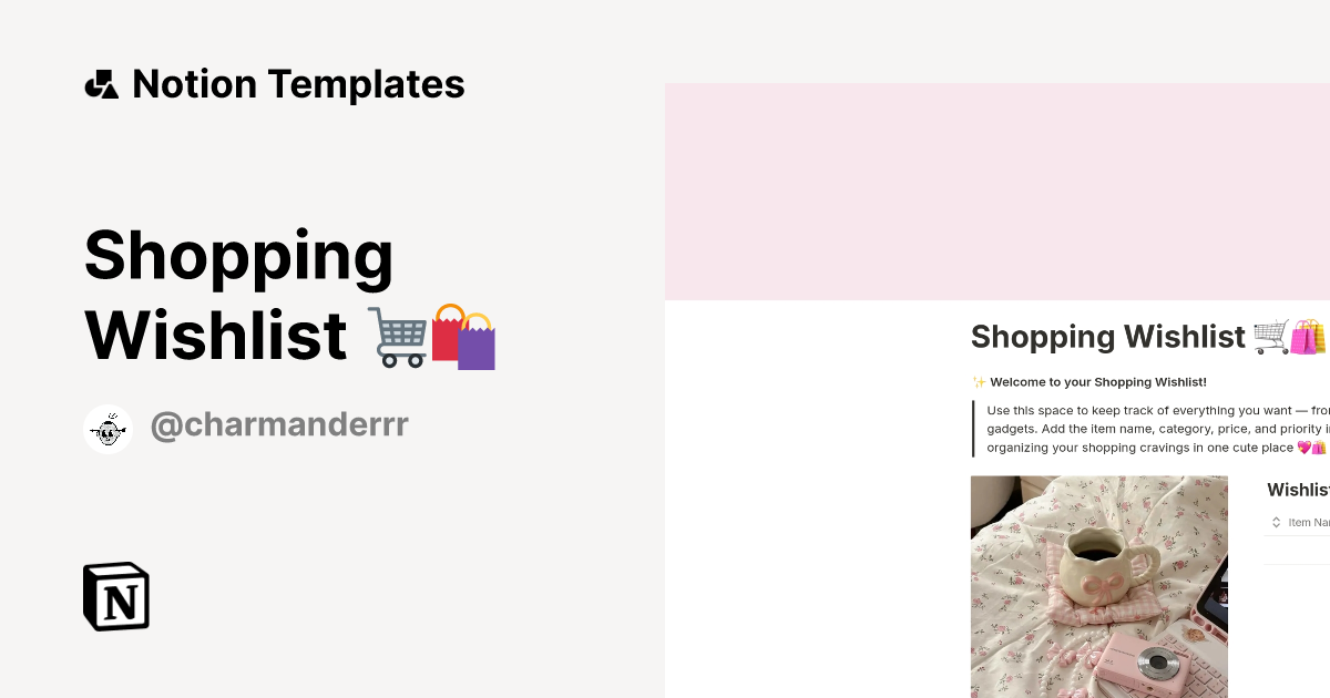 Shopping Wishlist ๐๐๏ธ Template by charmanderrr Notion Marketplace