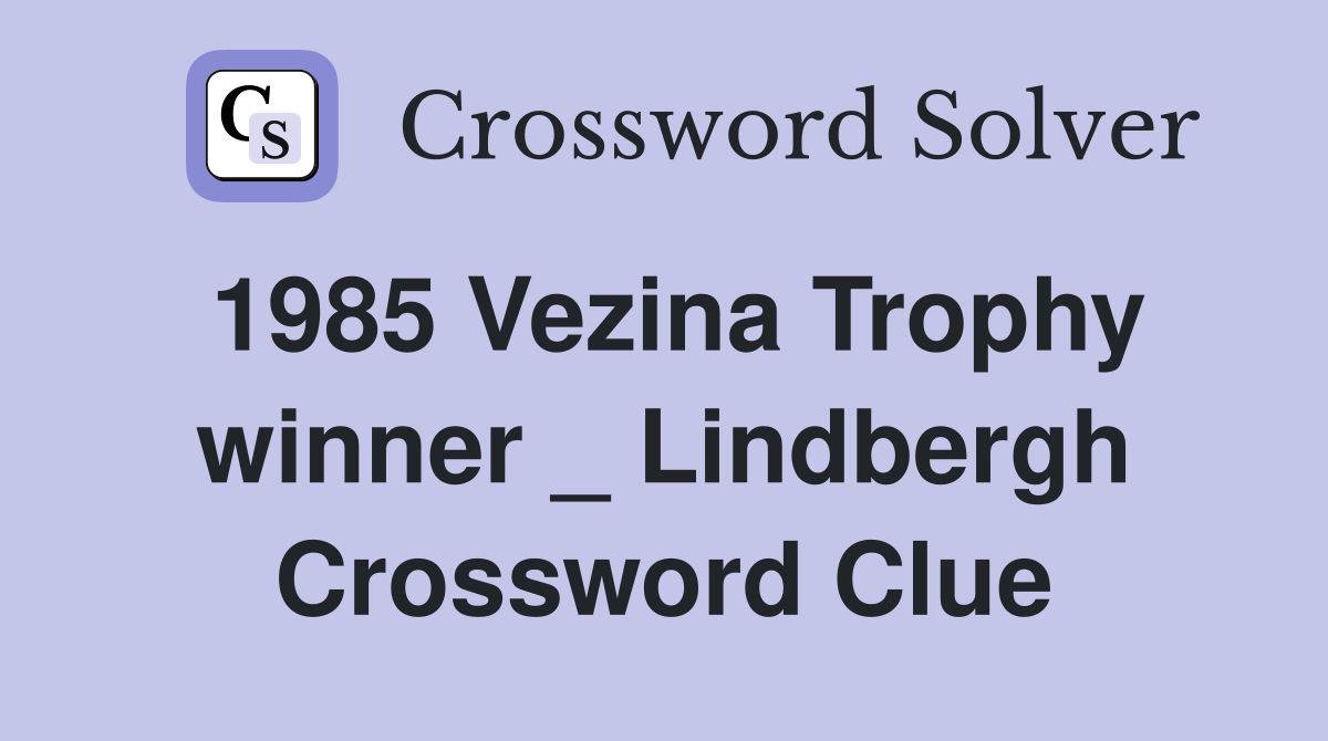 1985 Vezina Trophy winner Lindbergh Crossword Clue Answers
