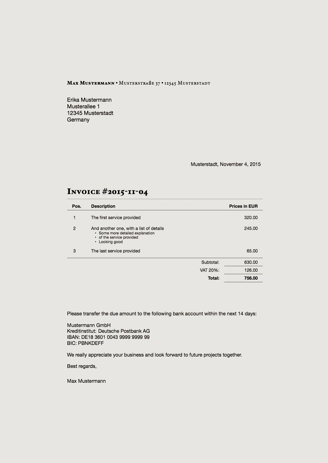 Rechnung Template Latex