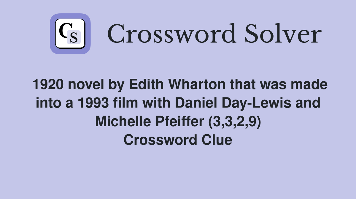 1920 novel by Edith Wharton that was made into a 1993 film with Daniel