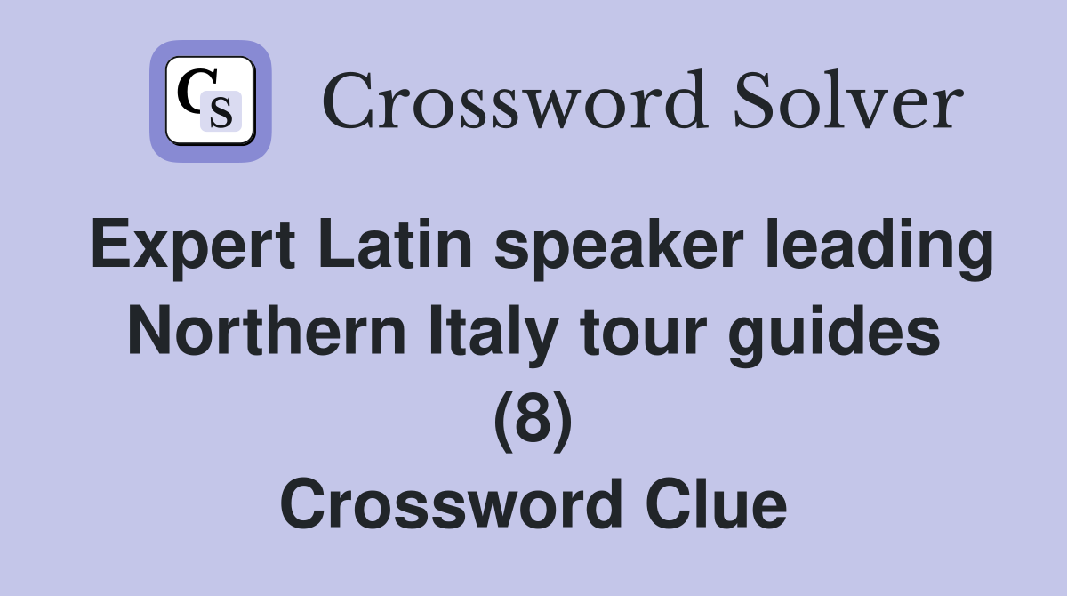 Expert Latin speaker leading Northern Italy tour guides (8) Crossword
