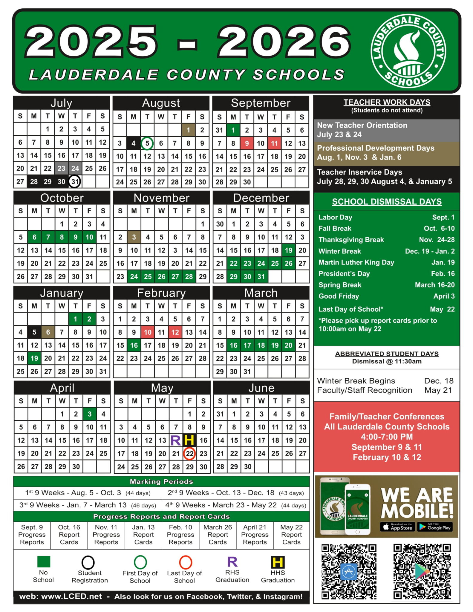 Lauderdale County Schools Calendar 2025 2026 in PDF School Calendar Info
