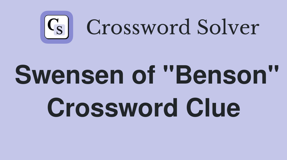 Swensen of quot Benson quot Crossword Clue Answers Crossword Solver