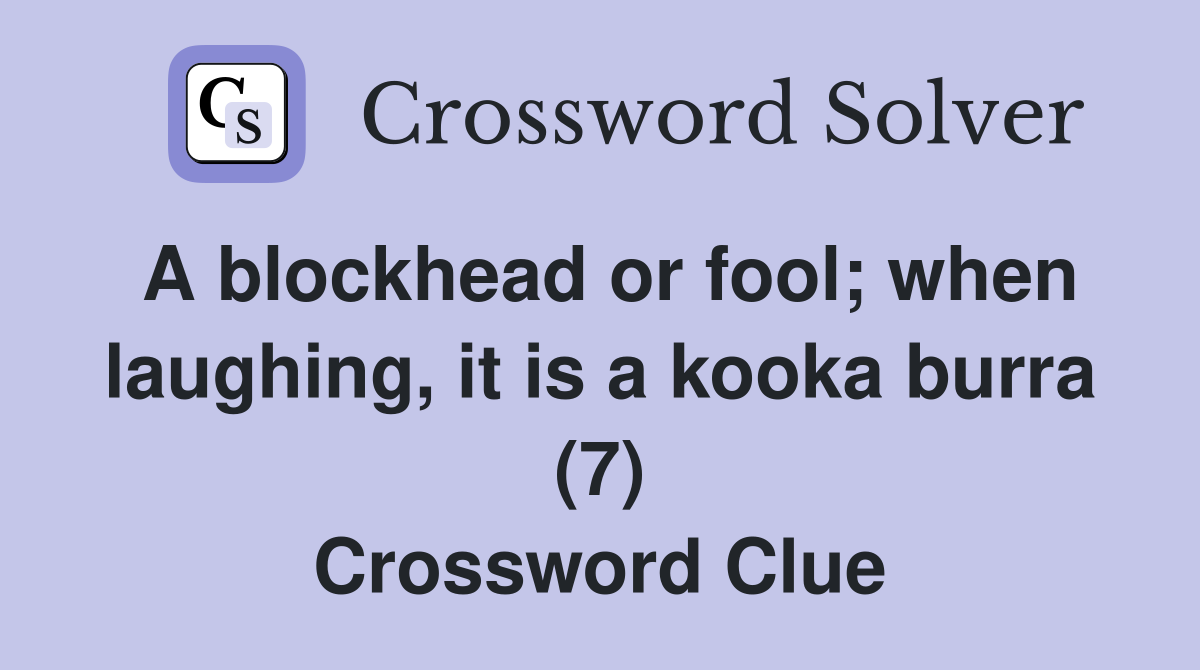 A blockhead or fool when laughing it is a kooka burra (7) Crossword