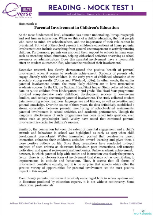 Launching Homework Mock test Reading 1 Interactive worksheet