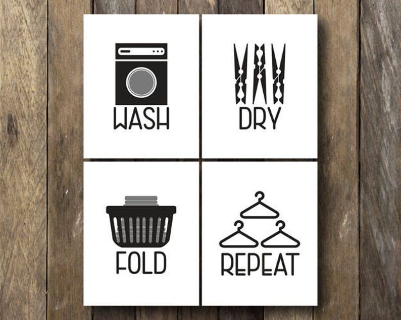Wash Dry Fold Repeat Laundry Room Printables Etsy