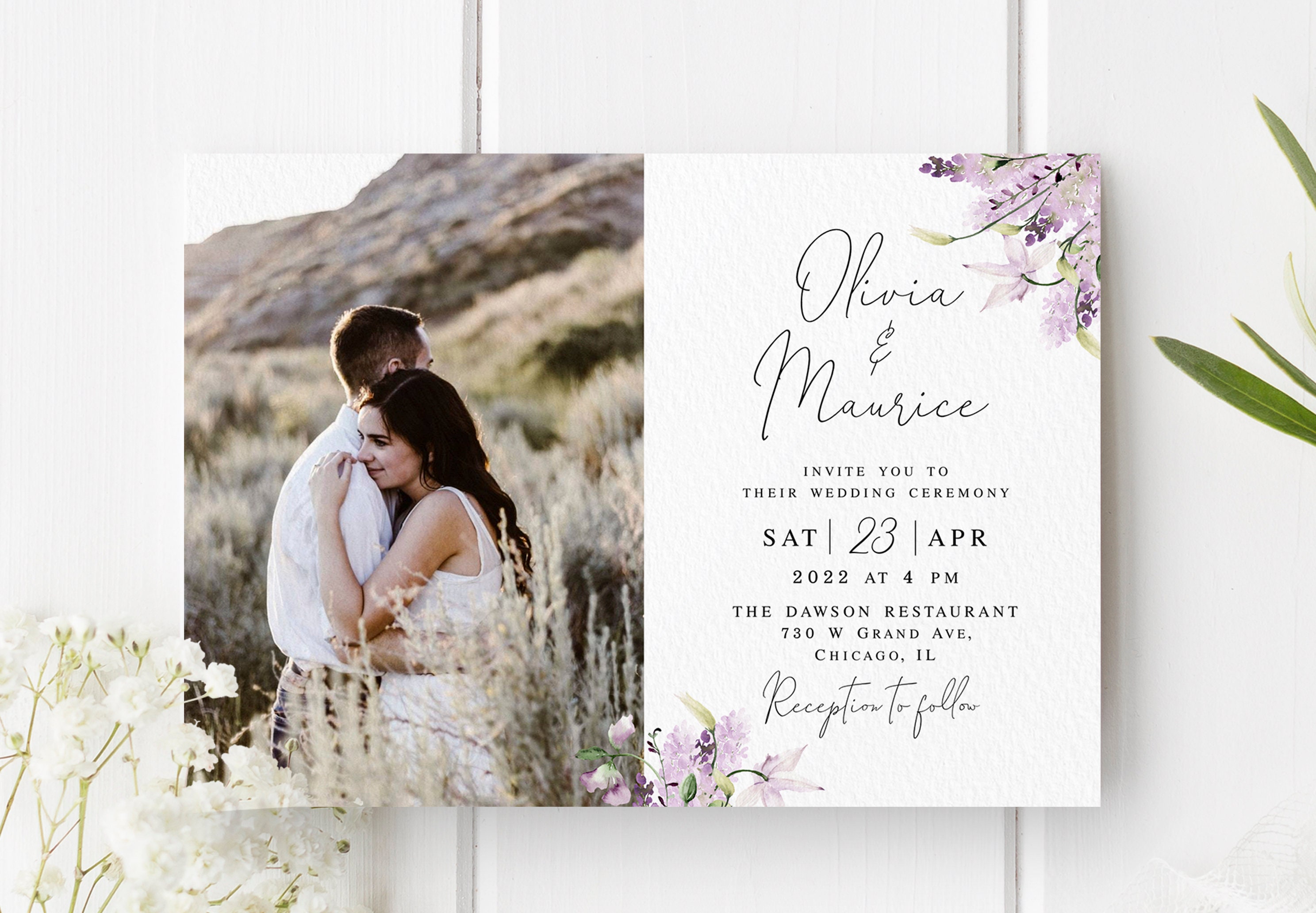 Lavender Wedding Invitation Editable Template Encre Studio