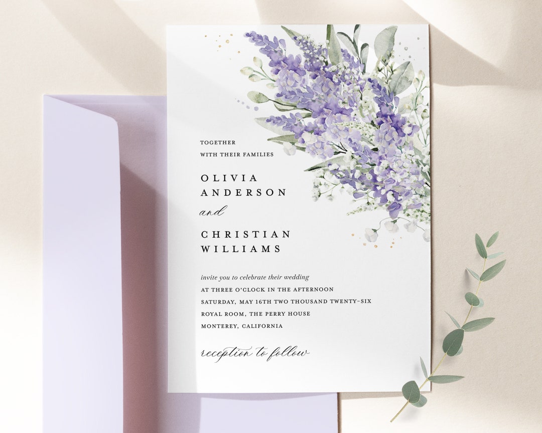 Lavender Wedding Invitation Template Editable Invite With Etsy