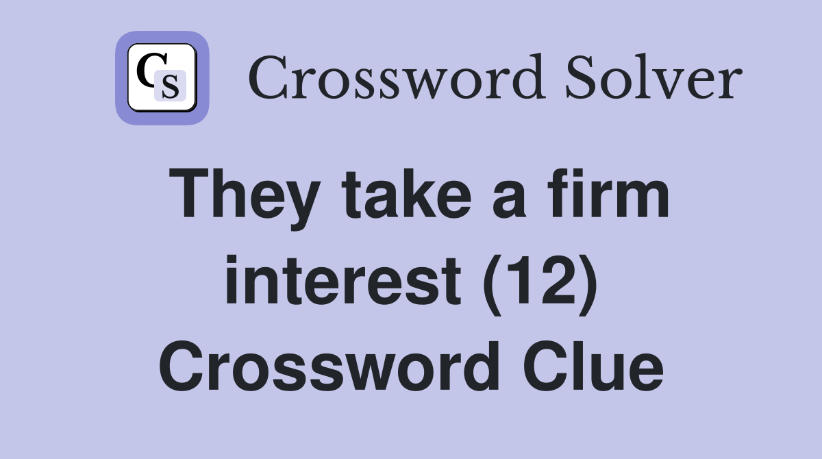 They take a firm interest (12) Crossword Clue Answers Crossword Solver