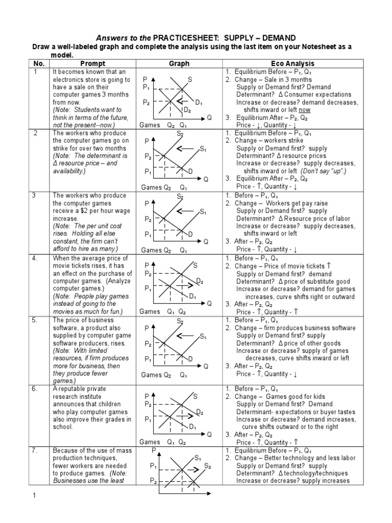Understanding Supply And Demand Worksheet Answer Key Alles was Sie
