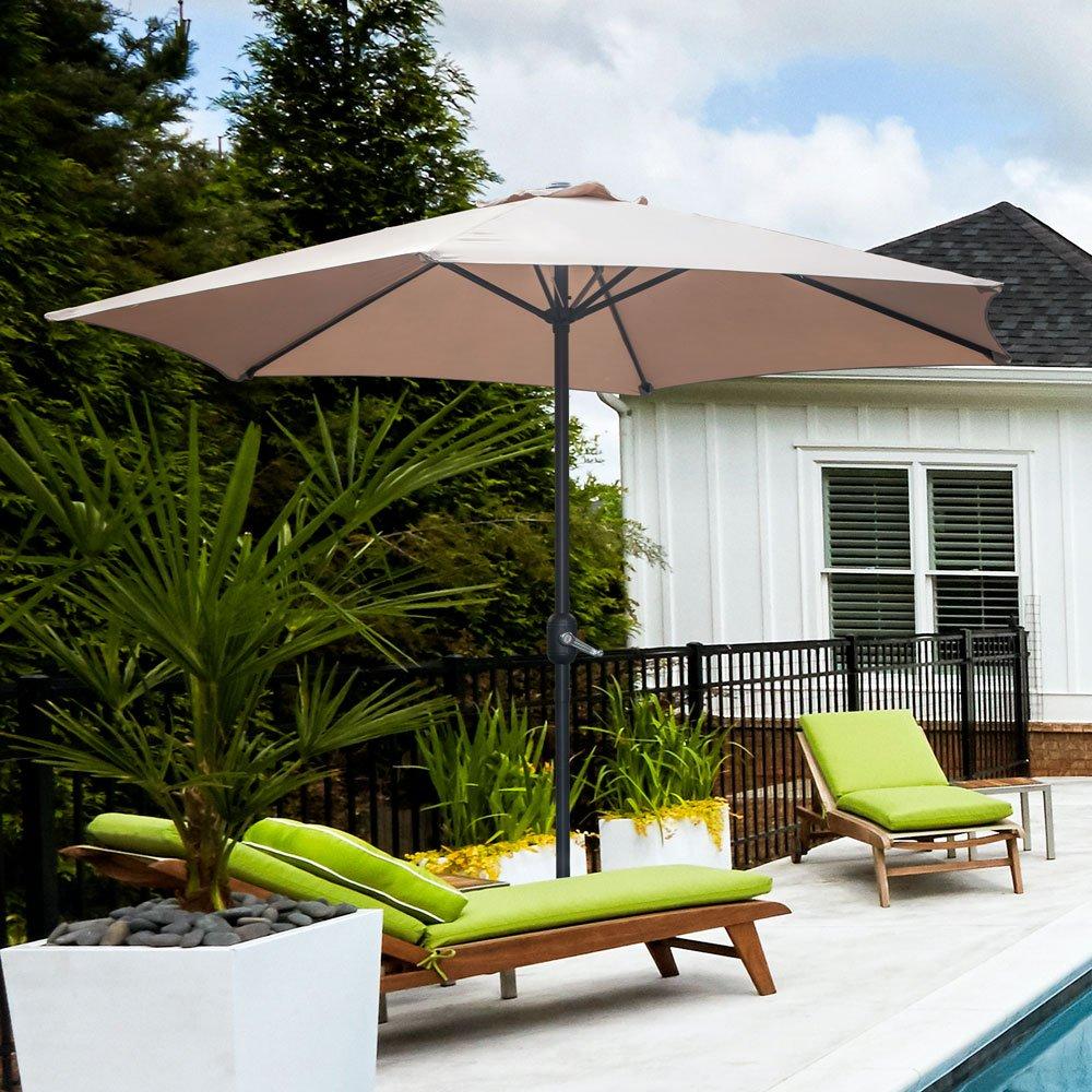 WELLFOR 9 ft Aluminum Crank Market Patio Umbrella with Lights at Lowes com