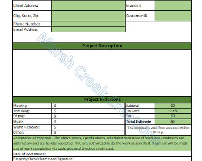 Lawn Mowing Bid Invoice Download ︱proposal ︱estimate ︱agreement