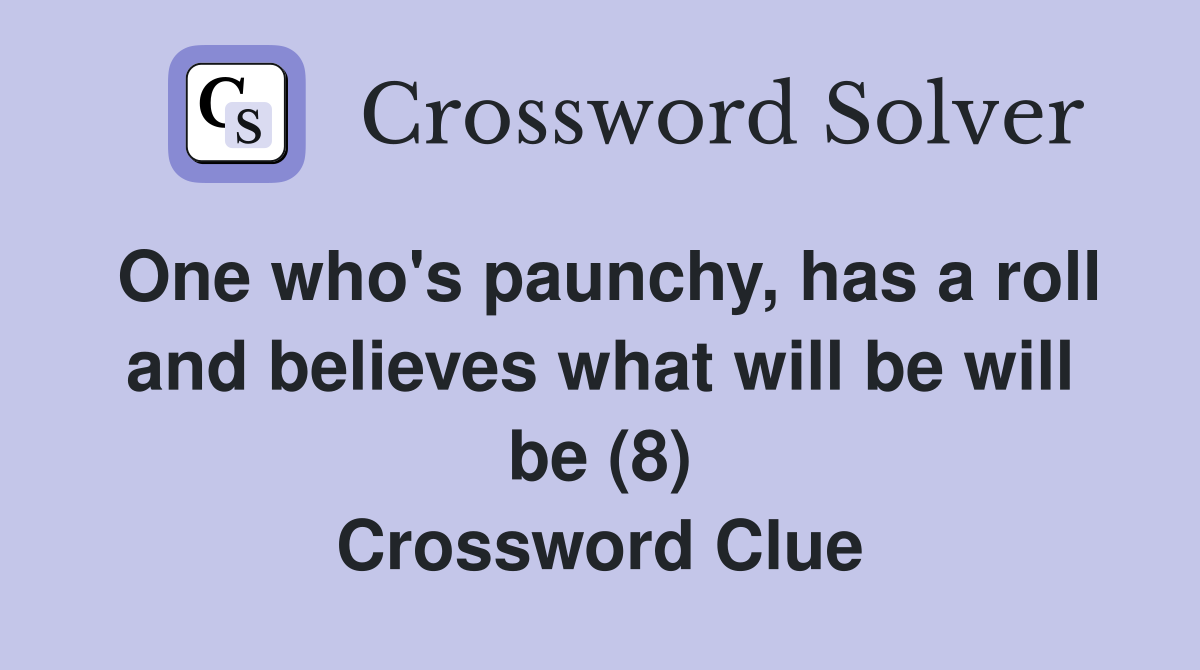 One who #39 s paunchy has a roll and believes what will be will be (8