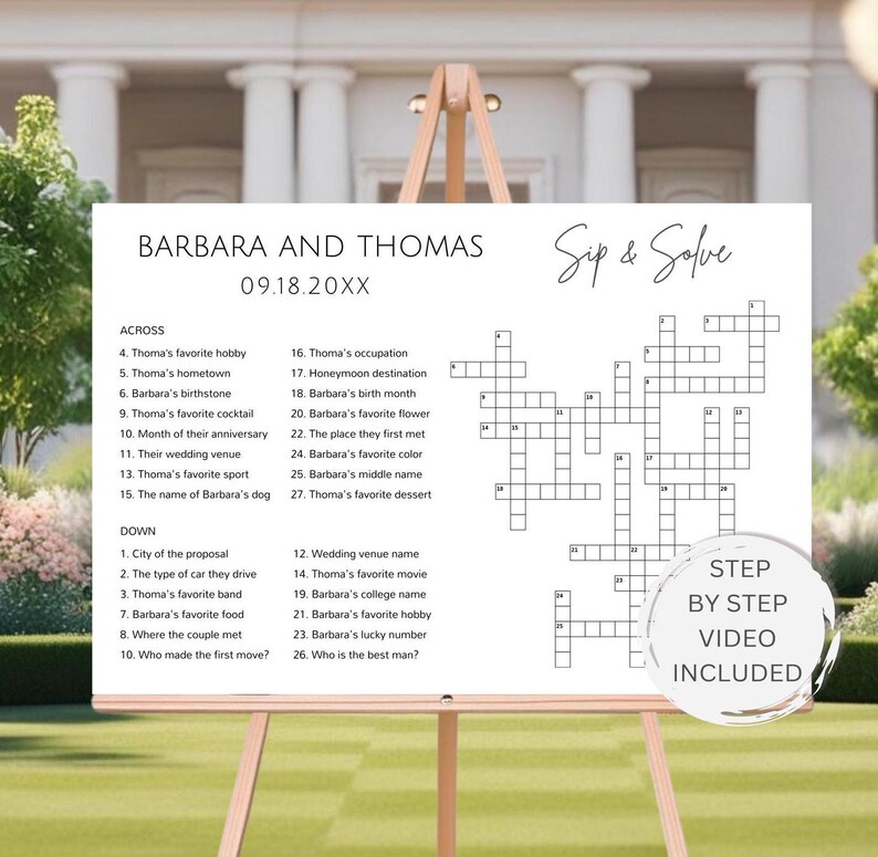 Custom Wedding Crossword Puzzle Sip and Solve Personalized Wedding