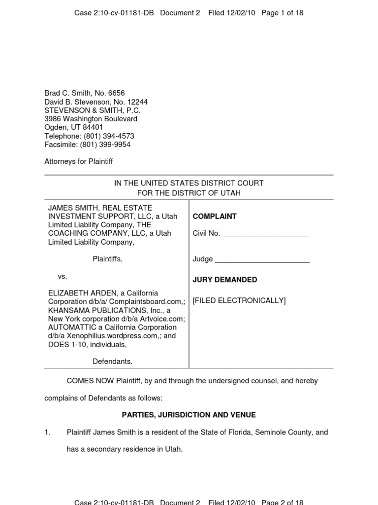 Smith V Arden Complaint PDF Intentional Infliction Of Emotional