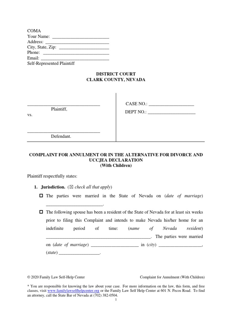 Annulment Complaint Kids PDF Fillable PDF Child Custody Child Support