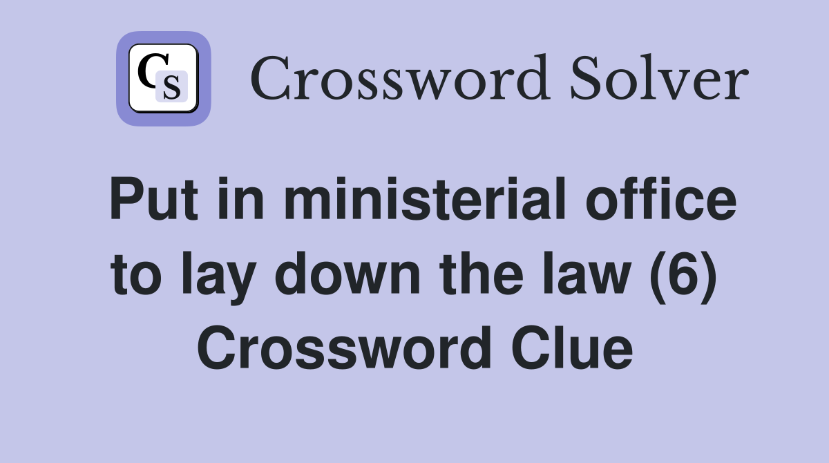 Put in ministerial office to lay down the law (6) Crossword Clue
