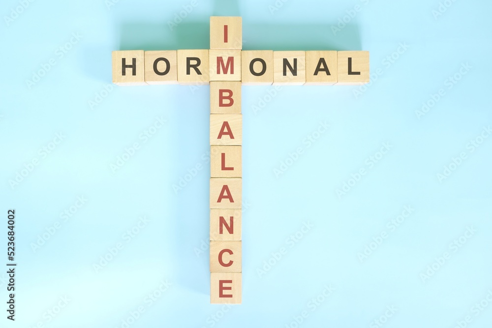 Hormonal imbalance concept Wooden blocks crossword puzzle flat lay in
