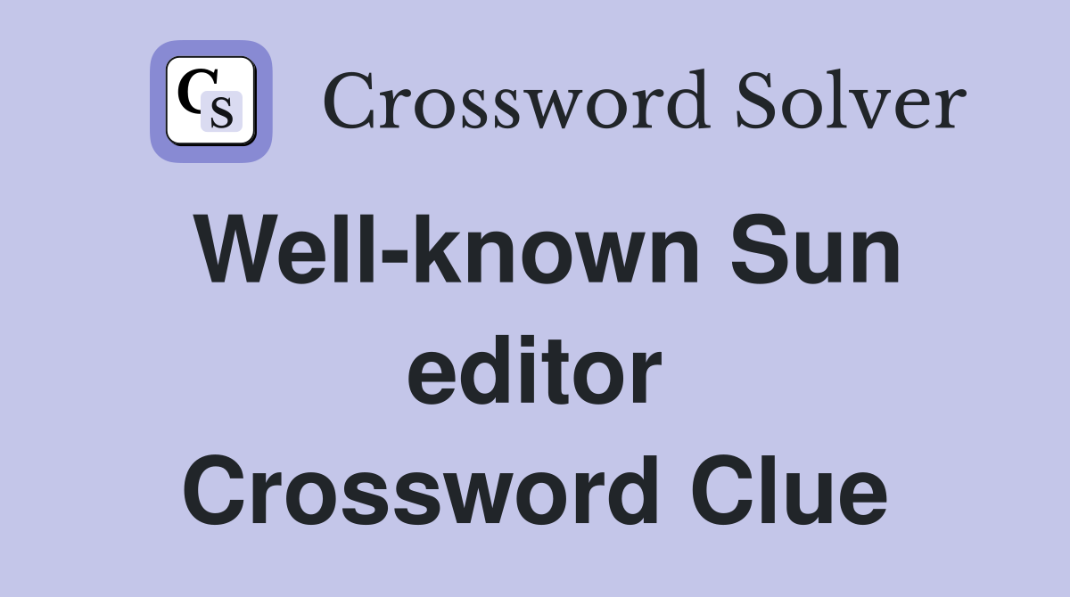 Well known Sun editor Crossword Clue Answers Crossword Solver