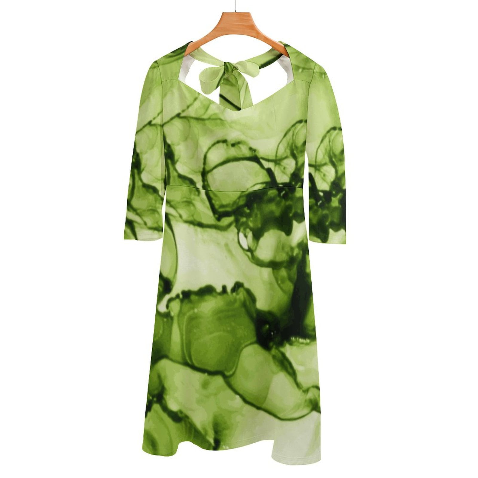 Layers Of Ink Green Back Lacing Backless Dress Square Neck Dress
