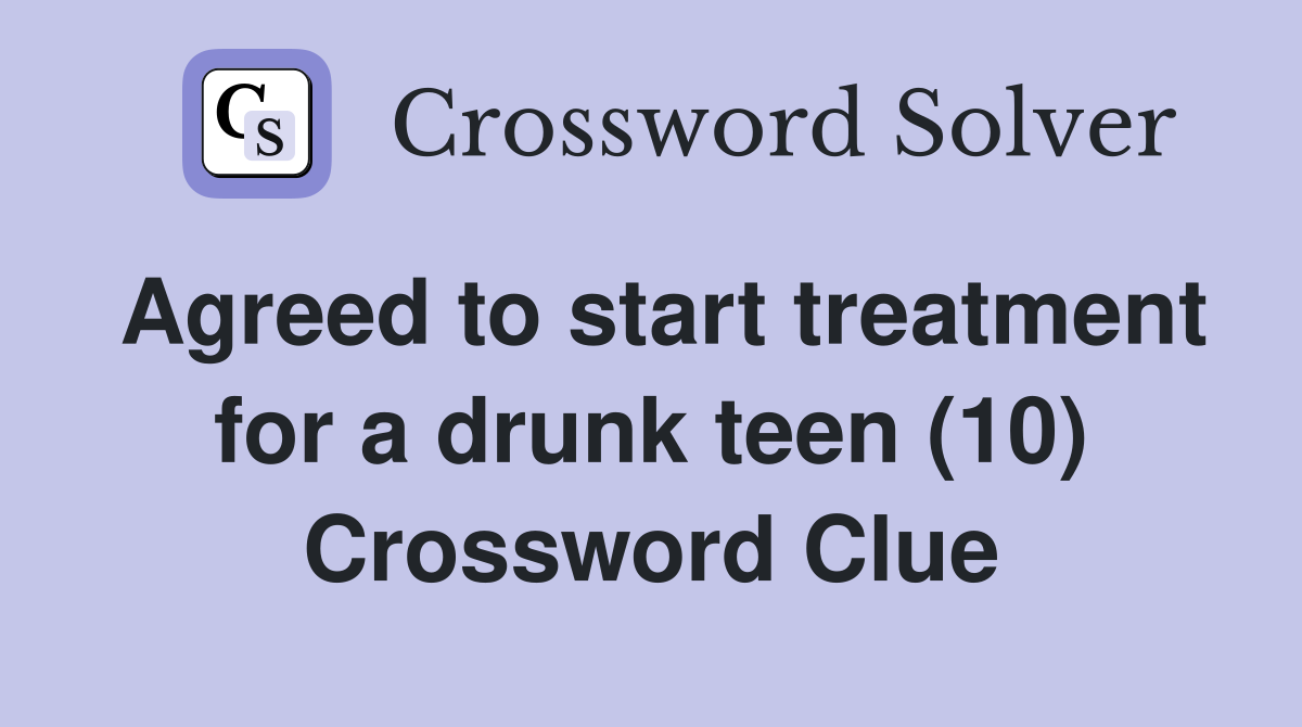 Agreed to start treatment for a drunk teen (10) Crossword Clue